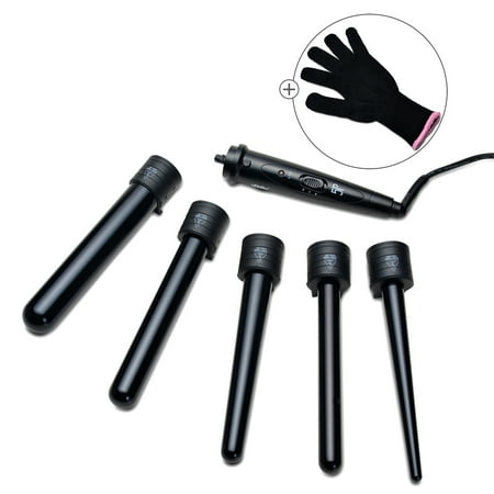 We are dedicated to hair health powerful salon grade quality sleek design. The xtava satin wave 5 in 1 curling iron set includes 5 interchangeable ceramic tourmaline barrels that range from a classic 1 inch curling wand with a clamp to smaller tapered barrels for defining tighter curls. 5 in 1 curling iron wand set with 5 interchangeable ceramic barrels with clamp and anti scalding tip 0 35 to 1 25 and heat resistant glove rose gold hair curler for women gifts by duomishu.